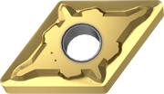 Turning inserts from YG1, a top cutting tool manufacturer from Korea. The choice of the appropriate insert depends on the chipbreaker, that is the geometry that helps in breaking and removing the chip, as well as on the grade, which describes the microstructure and coating of the insert and directly affects hardness and toughness. The cutting conditions (speed, feed, depth) must be carefully set to achieve maximum tool performance and life.
