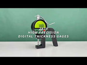 Digital bag thickness gauge for measuring thickness on thin, flexible materials such as film, membranes, plastic sheets, and similar packaging materials. It uses an absolute encoder to retain readings after power off, provides measurement functions (mm/inch, tolerance, max/min/TIR), and includes data output for recording measurements.