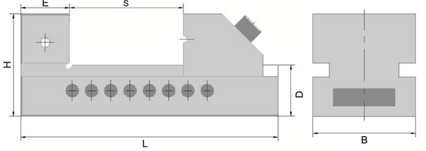 - Dimensions (per drawing): B, H, E, D, Smax, L
