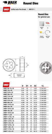 | D-UNEF-1/2-28 | 1/2 x 28 | 38 - 10 | 12.59 | 4 available |