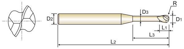 ET2B-K2-RIB Κονδύλι 2 Φτερο Ball Nose Καρβιδίου K-2 RIB