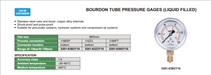 Αναλογικό μανόμετρο γλυκερίνης, κατάλληλο για χρήση σε υδραυλικά και συστήματα πεπιεσμένου αέρα. Ενσωματώνει σωλήνα Bourdon, ανοξείδωτο περίβλημα και εσωτερικά εξαρτήματα από κράμα χαλκού. Η ένδειξη είναι σε bar και psi. Η κάτω είσοδος σύνδεσης διατίθεται σε 1/4 BSP, ZG ή NPT.